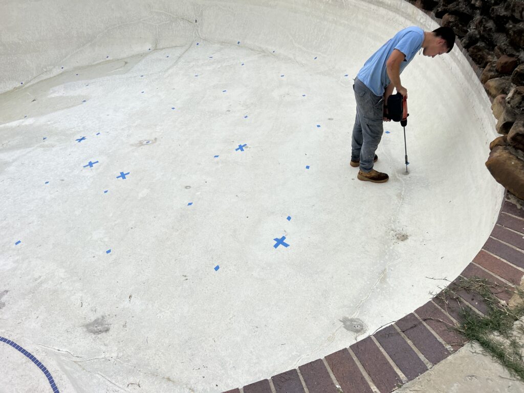 - Repairing Cracks and Leveling: After the pool is stabilized, we repair any cracks in the pool shell or surrounding deck to ensure that everything is structurally sound and aesthetically pleasing.