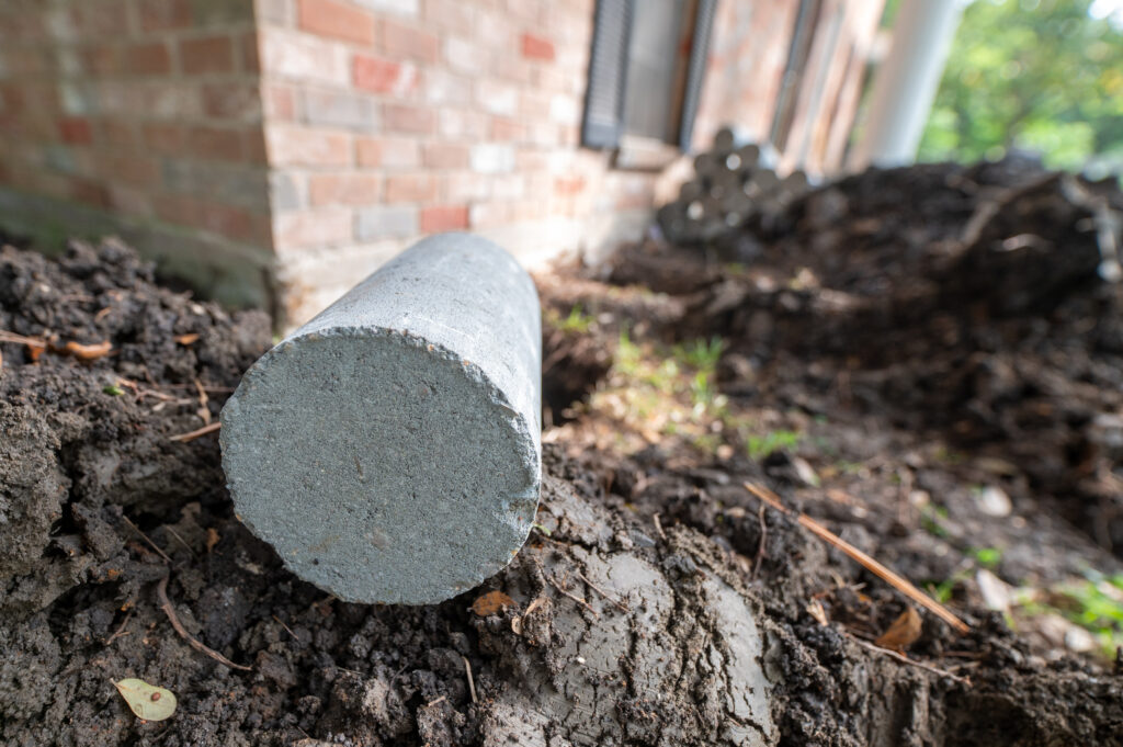 6. Securing the Pilings and Backfilling: After the foundation is leveled, we secure the pilings in place and backfill the excavated areas with soil to restore the appearance of the property. The foundation is now supported by the pressed concrete pilings, which prevent further settlement or movement.